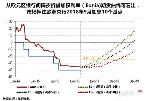 多方預(yù)期,在法國大選的結(jié)果出爐、政治風(fēng)險(xiǎn)被消化完畢后,屆時(shí)的歐洲經(jīng)濟(jì)亦將處于多年來最佳狀態(tài),歐央行關(guān)于縮減寬松政策的討論將會(huì)變得“激烈”,許多決策者認(rèn)為可在6月會(huì)議上傳遞些許縮減刺激政策的信號(hào)。